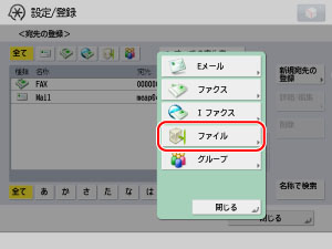 先ほど作成したファクス送信用フォルダーがアドレス帳に登録されます。