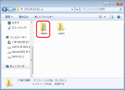 [ホスト名]では、「\\<本体のIPアドレス>\share」を入力します。