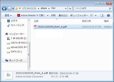コンピューターから本製品のアドバンスドボックスのファクス送信用フォルダーにアクセスします。