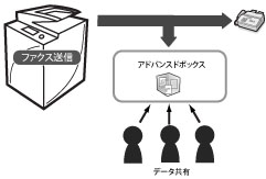 アドバンスドボックスの共有フォルダーを宛先に指定してファクスを送信することで、送信したファクス文書を複数のユーザーが確認できます。