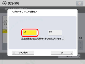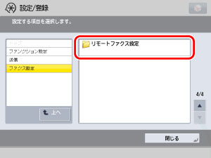 (設定/登録)→[ファンクション設定]→[送信]→[ファクス設定]→[リモートファクス設定]を押します。