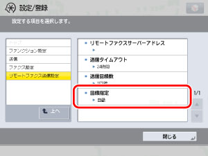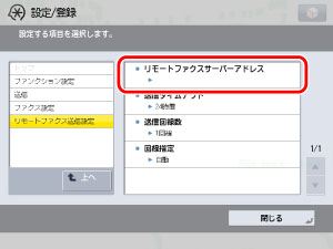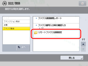 (設定/登録)→[ファンクション設定]→[送信]→[ファクス設定]→[リモートファクス送信設定]を押します。