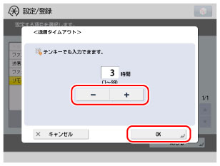 [-][+]を押して送信タイムアウト時間を設定したあと、[OK]を押します。