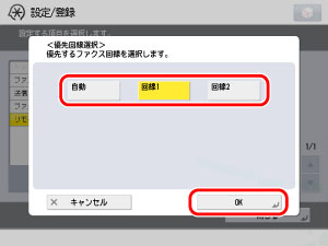 [自動]または優先的に使用する回線を選択したあと、[OK]→[閉じる]を押します。