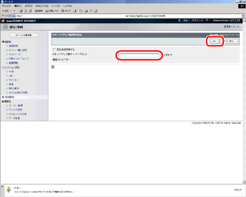 リモートアドレス帳サーバーアドレスを入力して、[OK]をクリックします。