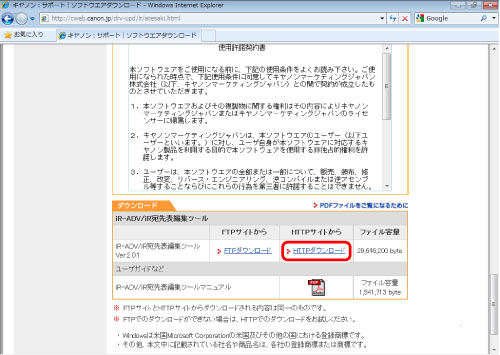 以下のキヤノンホームページにアクセスして、iR-ADV/iR宛先表編集ツールをダウンロードします。