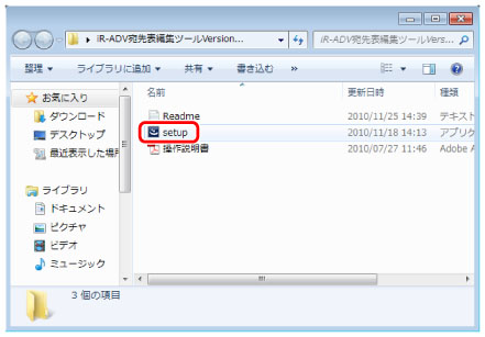 ダウンロードしたインストールディスク内のファイルから、exeファイルをダブルクリックします。