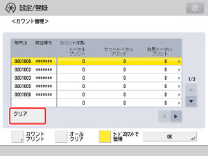部門ごとにカウントを消去する場合は、消去する部門を選択したあと、[クリア]を押します。