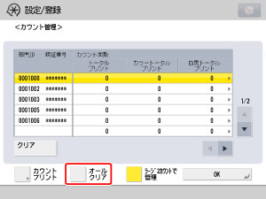 単月の実績を管理する場合、指定した日に[オールクリア]を押してカウントをリセットすると便利です。[オールクリア]を押す直前に実績を控えておきます。カウントの停止はできません。