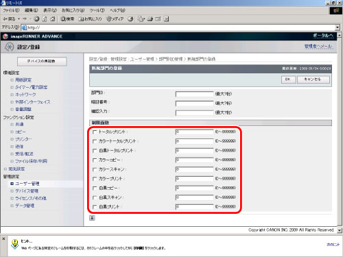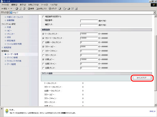 制限面数とは、部門ID毎に使用できる機能の上限を設け、その面数に達すると動作を強制的に停止する機能です。制限面数の設定は、