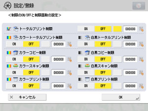 ファンクション制限とは、部門別ID管理の対象とする機能をコピー/プリント以外でON/OFF設定できる機能です。