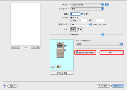 お使いのプリンターを選択したあと、[特別処理]パネルを選択します。