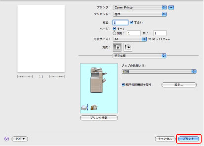 部門別ID管理機能を設定したプリンタードライバーを使用して印刷します。