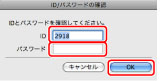 [ID/パスワードの設定]ダイアログで、「本体での設定」の手順4で設定したIDとパスワードを設定します。