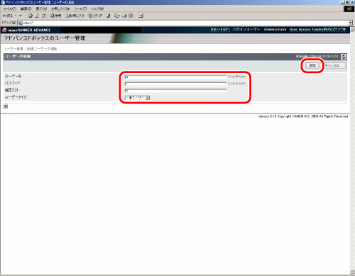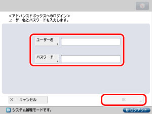 ユーザー情報の登録」の手順5で設定したユーザー名とパスワードを入力し、[OK]を押します。