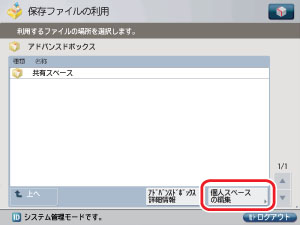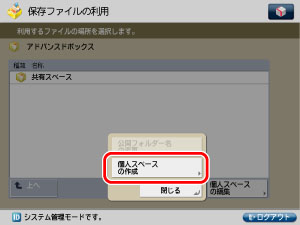(設定/登録)→[ファンクション設定]→[ファイル保存/利用]→[アドバンスドボックス設定]→[個人スペースの作成を許可]