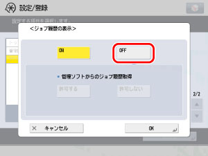 [認証前のジョブ状況の表示]を押したあと、[OFF]→[OK]を押します。