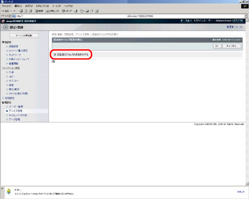 認証前のジョブ状況の表示を設定する場合は、[認証前のジョブ状況の表示]をクリックして、[認証前のジョブ状況を表示する]からチェックマークを外したあと、[OK]をクリックします。