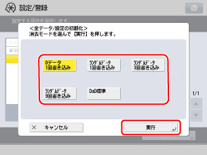 [0データ1回書き込み]: データの上書きに"0"データを使用して1回上書きします。