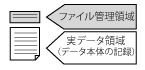 データファイルは、ファイル名などの「ファイル管理領域」と、データ本体の「実データ領域」の2つに分けて保存されます。