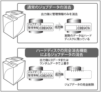 ハードディスク内に生成されるジョブのテンポラリーデータをジョブ終了と同時に自動的に完全消去します。