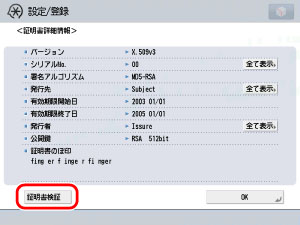 ユーザー証明書を確認する鍵ペアを選択して、[証明書詳細情報]→[証明書検証]を押します。