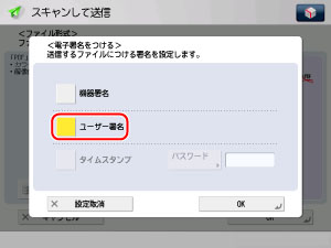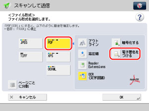 詳細は、「電子署名付きPDF/XPSにする(電子署名をつける)」を参照してください。