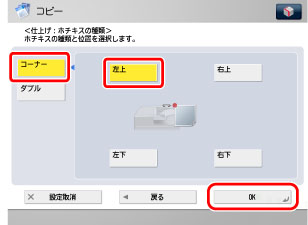 本製品および重連コピープリンターにステイプルフィニッシャーまたは中綴じフィニッシャーが装着されている必要があります。