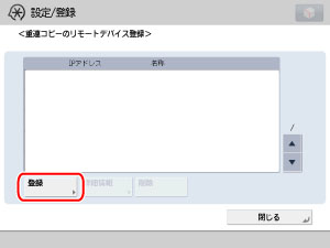 (設定/登録)→[ファンクション設定]→[コピー]→[重連コピーのリモートデバイス登録]を押します。
