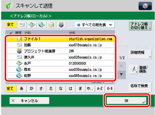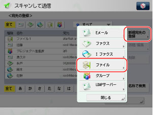 表示される「新規宛先の登録 ファイル」画面で、各項目を設定したあと、[OK]をクリックします。