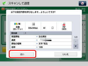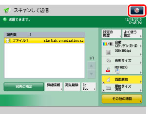 原稿をフィーダーまたは原稿台ガラスにセットして、メインメニュー画面で[スキャンして送信]を押します。