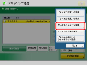 普通はここで(スタート)を押して送信を開始しますが、ここでは、この操作をカスタムメニューに登録します。