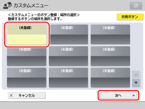 登録するボタンの場所を選択したあと、[次へ]を押します。