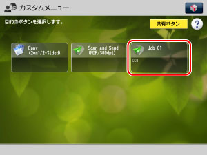 カスタムメニューは、日常のオフィスにおいて本体機能を使用した定型的な業務を効率化するための機能です。コピー、スキャンして送信、スキャンして保存などでよく使用する一連の操作を一つのボタンとして作成、登録できます。