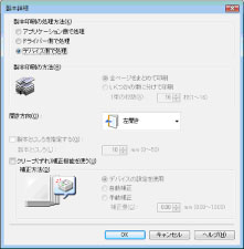 [ドライバー側で処理]、および[デバイス側で処理]のいずれを選択した場合でも、[開き方向]は設定することができます。