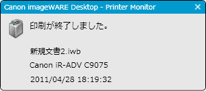 また、印刷ジョブの終了時には、終了通知メッセージが表示されます。