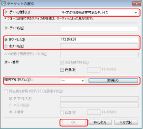 ターゲットデバイスの情報を登録し、[OK]ボタンをクリックします。