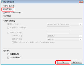 [高圧縮]にチェックマークを付けて、[OK]ボタンをクリックします。