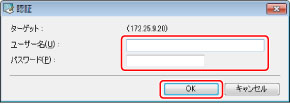 [認証]ダイアログボックスが表示された場合は、デバイスのシステム管理部門IDとシステム管理暗証番号を[ユーザー名]と[パスワード]に入力します。