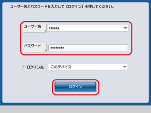 ここでは、[ユーザー名]に「tanaka」、[パスワード]に「password」を入力しています。