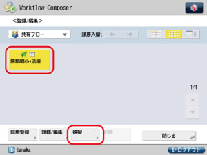 目的のフロー([原稿縮小+送信])を選択して、[複製]を押します。