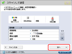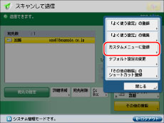 「ファイル送信/参照時の認証で使用する情報」で[本機ログイン時の認証情報]を設定している場合は、カスタムメニューに登録する内容に宛先のパスワードは含まれません。「ファイル送信/参照時の認証で使用する情報」について詳しくは、「ファイルサーバー認証時の認証方式を設定する」を参照してください。