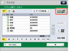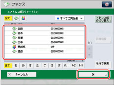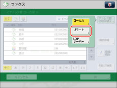 [アドレス帳の切り替え]は、リモートアドレス帳とLDAPサーバーが登録されているときに表示されます。リモートアドレス帳のみが登録されているときは[リモートへ]が表示されます。