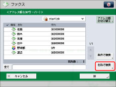 [条件で検索]から宛先を絞り込んで検索結果が宛先リスト画面に表示された場合、さらに[名称で検索]を押して名称で絞り込む検索はできません。