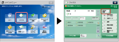 ひとつの履歴に記憶されている宛先が複数あるときは、呼び出したときに宛先リストに表示される宛先の表示順が、設定したときの順番と異なることがあります。