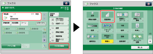 宛先を指定→[その他の機能]→[両面原稿]を押す