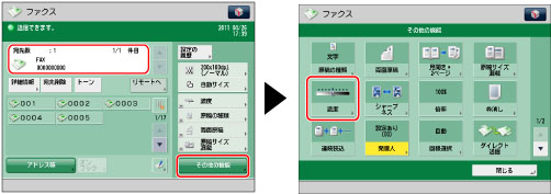 原稿の色の濃さに応じて、濃度を調節してファクス送信できます。背景(紙色など)の状態にあわせて調整することもできます。