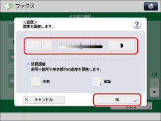を押して原稿全体の濃度を調整→[OK]→[閉じる]を押す