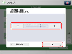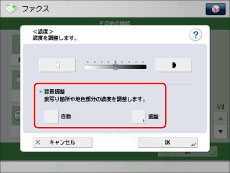 <背景調整>で[調整]を押して調整値を変更すると、[自動]の設定は解除されます。また、[調整]で濃度調整をしているときに[自動]を押すと、調整値は解除され、下地の画質を自動的に調整します。