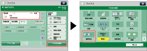 宛先を指定→[その他の機能]→[連続読込]を押す